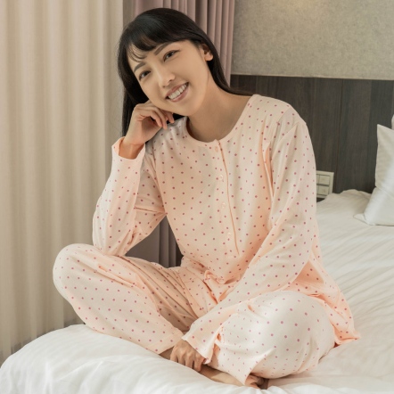 .哺乳套裝應該穿幾號?由於此款哺乳套裝版型設計較為寬鬆,一般我們建議 165 公分以下的媽媽著 M 號尺寸,實際仍然請您參考尺寸表。