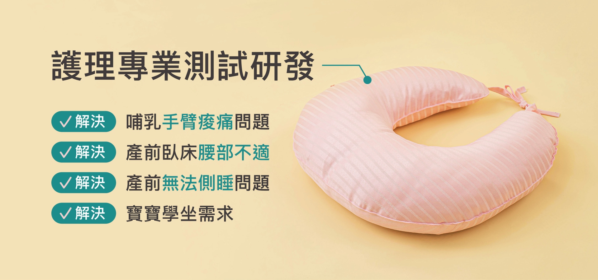 與護理專業人員合作設計,幫助媽咪解決從孕期、哺乳到寶寶學坐需求,解決產前臥床腰部不適、無法側睡,及哺乳手臂痠痛問題。